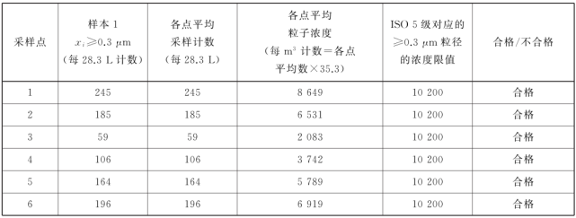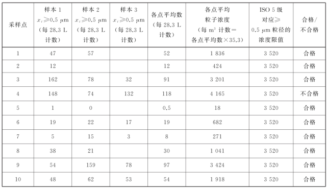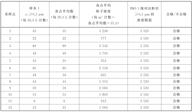 表中所有濃度都是累積濃度,例如ISO5.5 級,0.5μm 粒徑的11100 顆中,包括所有粒徑大于或等于該粒徑的粒子。