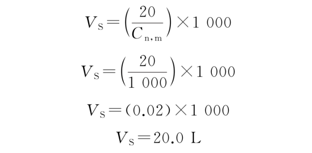 文件給出了確定單次采樣量和各點的采樣時間的方法:所選最大粒徑的粒子濃度恰好為規定的ISO 級別上限時,在各采樣點所采的空氣量足以檢測到至少20個粒子。每個采樣點的單次采樣量VS,按公式(A.2)計算。