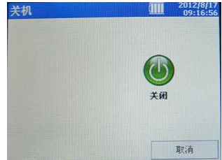 六、測試完畢后,按電源鍵屏幕顯示OFF,點擊此按鈕,儀器關閉。